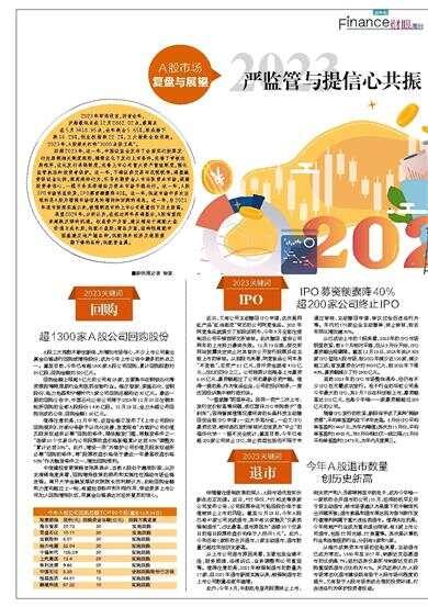 回顾2023年,这一年,中国证监会发布了全面实行股票发行注册制相关制度规则,精简优化了发行上市条件,完善了审核注册程序,优化发行承销制度,完善上市公司重大资产重组制度,强化监管执法和投资者保护。这一年,下调证券交易印花税税率,调整融资保证金比例,规范减持行为,引导长期资金入市活跃资本市场,提振投资者信心,一揽子务实举措助力资本市场平稳运行。这一年,A股IPO市场明显收紧,IPO募资额骤降40%。这一年,低迷市场中多次出现的是A股为增强市场信息的增持和回购的消息。这一年,自2021年退市新规实施以来,被强制退市的上市公司数量创下历史新高。