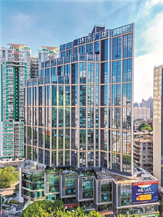 越秀区作为老城区,致力于激活重焕存量空间价值。环东广场前身是始建于1986年的老酒店,曾是区庄第一高楼,2018年后全面停业,2020年1月,在越秀区牵头协调下,促成珠江实业全盘接手项目,投入约1.3亿元改造资金,采用微改造方式,打造高端产业综合体。目前,项目办公区已入驻50余家企业,出租率达100%,医疗大健康垂直产业集聚度超60%。楼宇已入选广州市提质增效试点园区,预计年租赁收入达4000多万元。