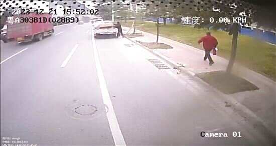 情况不容乐观,周国荣赶紧把公交车停在安全位置,向车上乘客说明情况后,便迅速提起车载灭火器,以百米冲刺的速度冲向着火货车,全力救火。约2分钟后,明火终于被扑灭,周国荣检查确认没有复燃风险后,就返回车厢,继续执行营运任务了。车上乘客纷纷为周国荣勇敢果断、干脆利落的英勇举动点赞。