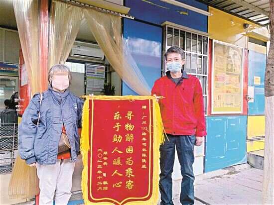 12月19日下午,乘客吴女士将一面写有“寻物解困为乘客,乐于助人暖人心”的锦旗送到183线汾水总站,亲手交到公交车长陈俊威手上,表达对他拾金不昧、助人为乐的感激之情。