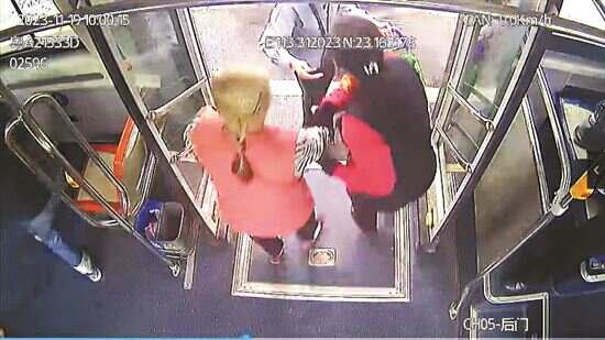 ■504线车长李安玉暖心搀扶老年乘客。
