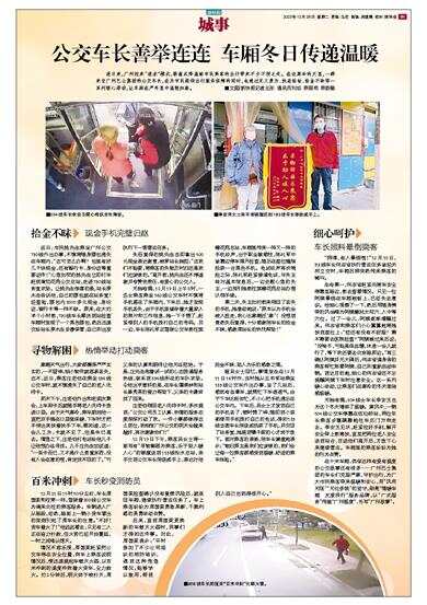 连日来,广州迎来“速冻”模式,断崖式降温给市民乘客的出行带来不少不便之处。在这寒冷的天里,一群来自广州巴士集团的公交车长,在为市民提供出行服务保障的同时,也通过见义勇为、扶老助幼、拾金不昧等一系列暖心举动,让车厢在严冬里中温暖如春。