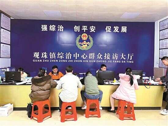 ■茂名市电白区观珠镇综治中心里,工作人员认真了解群众诉求,努力将矛盾化解在基层源头。