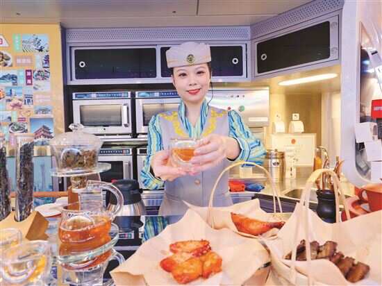 在汕汕高铁首趟C1893次列车上,记者在现场看到,列车员还特意穿上汉服,为车上的乘客送上了功夫茶和高铁奶茶,搭配猪肉脯、牛肉脯等粤东特色休闲食品,餐车还提供鲜肉肠粉、潮式香卤鸭翅等具有沿途地区风味的餐食。
