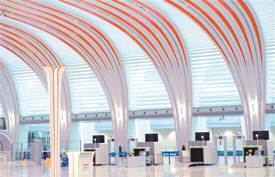 此外,白云站东西两侧的“光谷”也是市民打卡的一个热点。“光谷”采用超长悬挑+环拱组合结构引入室外光线,实现了广州白云站最具标志性的空间。其中的木棉花瓣柱、骑楼元素、采光天窗,带来宽阔、明亮、时尚又复古的气息。