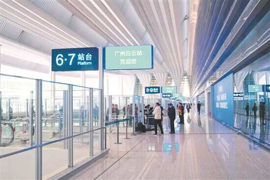 目前,广州白云站已接通广州地铁8号线石潭站,石潭站B出入口与广州白云站换乘通道相连,市民到达石潭站后,可直接走地下换乘通道到达广州白云站西下沉广场,上楼即可抵达广州白云站西北区的1号进站口,耗时大约10分钟。目前沿线各地铁站牌上已经贴出指示,在石潭站旁标注,而且列车上也有广播。