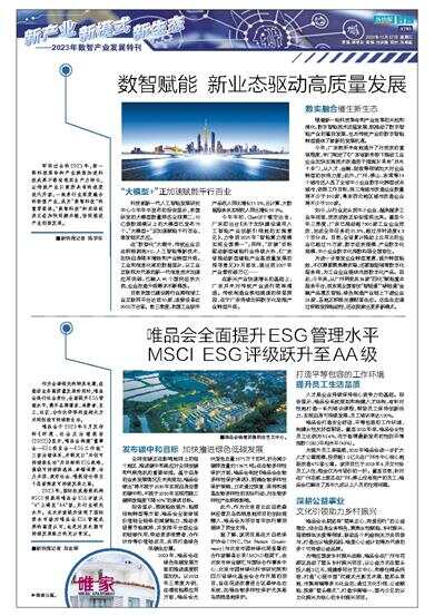 2023年,国际权威指数机构MSCI明晟将唯品会ESG评级从“A”上调至“AA”级,为行业领先水平。此次评级提升体现了国际资本市场对唯品会ESG管理成果的高度认可,也是对其长期可持续发展能力的充分肯定。