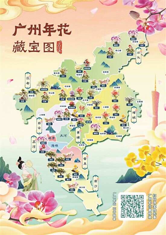 为大力促进2024年年花销售,让全国花卉采购商以及广大市民能更方便买到心仪的年花,广州市农业农村局提前收集全市主要的花卉种植大户和生产企业年花上市情况,并精心绘制了广州年花藏宝图。