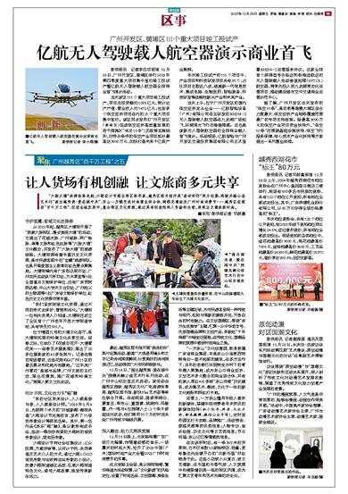 新快报讯 记者李应华报道 12月28日,广州开发区、黄埔区举行2023年第四季度重大项目集中签约竣工投试产暨亿航无人驾驶载人航空器全球商业首飞演示活动。