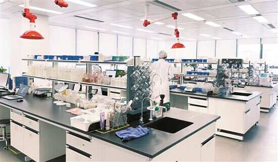 ■白云美湾国际化妆品研究院集群集聚国内知名高校、科研院所研发资源,推进产学研合作。图为内部实验室。