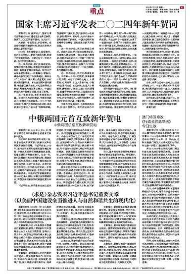据新华社电 记者2023年12月31日从澳门特区政府法务局获悉,澳门特区第20/2023号法律《修改〈行政长官选举法〉》将于2024年1月1日生效,这标志着澳门特区从法律制度和执行机制上进一步落实“爱国者治澳”原则。