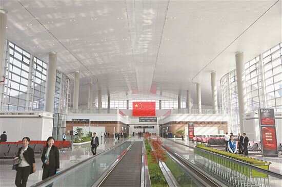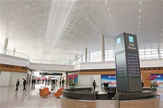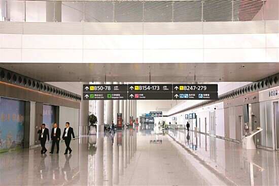 新指廊建筑最高点高度34.3米,新快报记者看到,候机区超高的挑高,加上视野开阔的超大落地玻璃和电动遮阳百叶,显得空间十分宽敞明亮。楼内配置全新标识标牌,休息等候区内配置了吧台式桌椅、超3000张可充电座椅、14台智能旅客指引PISS机、童趣氛围十足的母婴休息室,巧克力色的商铺装潢沉稳大气极具时尚“范儿”……设施与装潢相得益彰,整体指廊流程简捷、导向清晰、空间舒适、设施丰富、体验多样,为旅客带来愉悦的出行体验。