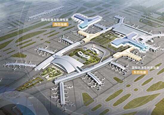 东四西四指廊整体用地内设有候机指廊、机坪、综合管廊、陆侧停车场等建筑。其中,东四指廊为国际指廊,西四指廊为国内混流指廊。启用之后,白云机场将新增登机口35个,近机位25个,白云机场现有航站楼使用面积及效率大幅扩大。