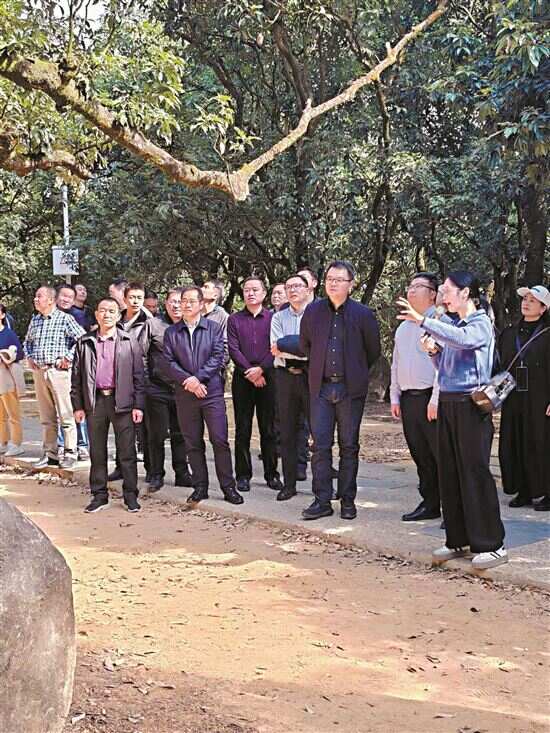 ■清远市委副秘书长、广清指挥部副指挥长徐懿带队参观茂名市高州市根子镇柏桥村荔枝产业园。