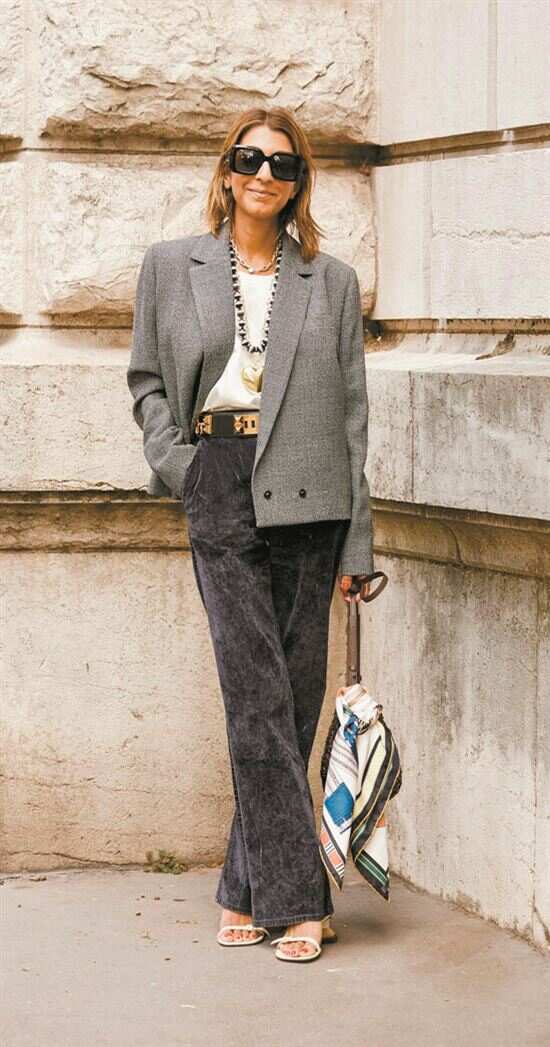 虽然灰色对肤色相对比较友好,但稍有不慎就会显得略平庸,此外还有一个比较常见的问题是容易显胖。所以可以尝试将深浅不一的灰色叠搭在一起,尤其是采用外深内浅或深-浅-深的“三明治穿搭法”,就能让格雷系穿搭在灰得高级且有层次的同时,又不会显得膨胀。