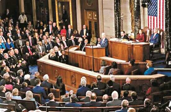 ■2023年2月7日,美国总统拜登在首都华盛顿的国会发表任内第二次国情咨文演讲。 新华社发
