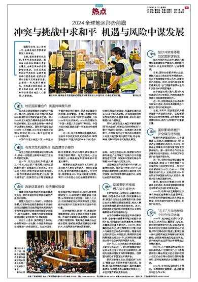 当前,国际局势变乱交织,百年变局加速演进。国际政治纷争和军事冲突多点爆发,全球发展和安全形势错综复杂。乌克兰危机和加沙冲突延宕、全球多国将举行重要选举、世界经济增长动能不足等诸多因素,让新的一年充满不确定性。但机遇与风险同在、希望与挑战并存,谋发展、求和平仍将是各地区人心所向、大势所趋。