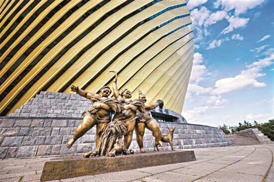 ■2023年8月27日,环游世界的“胖太阳”走进北国春城——许鸿飞雕塑世界巡展长春站开幕。图为作品《丰年》。