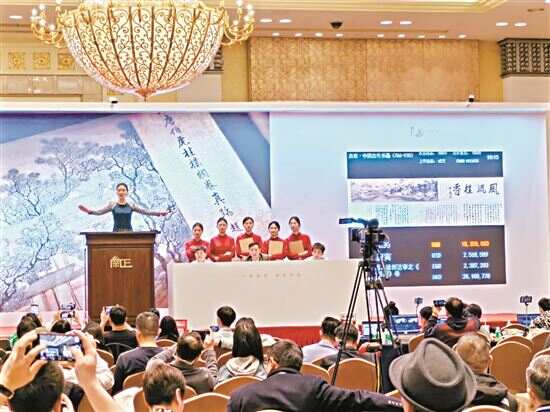 中国书画、岭南书画、珠林华章三个专场有平均76%的成交率,张大千人物、吴昌硕对联等由一万元起拍,最终经过多轮激烈角逐,以二三十倍溢价成交;吴昌硕1916年作《菊石图》以70万元成交,岭南封面关山月作品63万元成交,珠林华章封面作品《罗浮山指掌图》36万元成交。本场秋拍在市场深度调整中依然取得不俗成绩。拍卖行方面表示:“二千万的总成交额有赖广大藏家的倾力支持!”