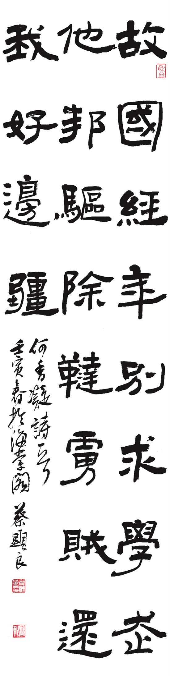 ■蔡显良书法,释文:故国经年别,求学走他邦。驱除鞑虏贼,还我好边疆。