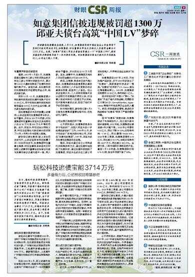 因涉嫌信息披露违法违规,1月4日,如意集团收到中国证监会山东监管局下发的《行政处罚决定书》,如意集团、时任董事长邱亚夫及相关人员被罚金额合计1305万元。此前,“如意系”实控人邱亚夫曾扬言要建立一个“中国版LVMH”,然而其激进的并购策略导致了一系列债务问题。而如意集团目前也已被列为失信被执行人,公司也已陷入亏损,