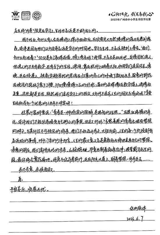 2023年广州市中小学生书信节比赛优秀作品鉴析⑤