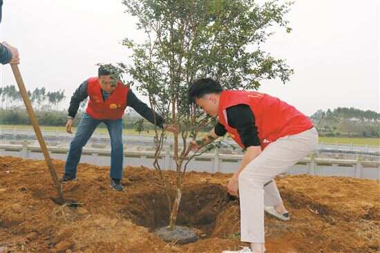 ■广州市驻湛江市遂溪县建新镇工作队参与“有喜事来种树”活动。