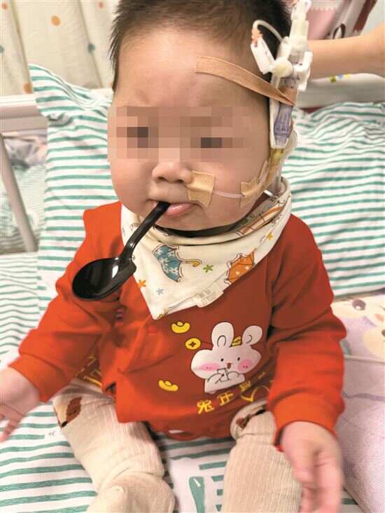 治疗必须按部就班,针对一项项问题处理。嘉佑在ICU监护治疗足足4个月,去年5月才稳住病情。医生告诉阿凯,宝宝身体营养吸收效果欠佳,暂时只能保守治疗,还叮嘱他们,孩子情况改善之前,都要住院。宝宝尚小,离不开父母照顾。阿凯干脆辞掉梅州的厨师工作,全身心在广州陪医,和妻子配合照顾嘉佑。