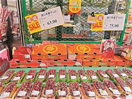 记者昨日在一大型超市看到,2J-3J的智利车厘子售价在63元-75元/斤,澳大利亚车厘子价格为99元/斤,阿根廷车厘子也是99元/斤。在线上水果店,2J智利车厘子的价格每斤在80元左右。
