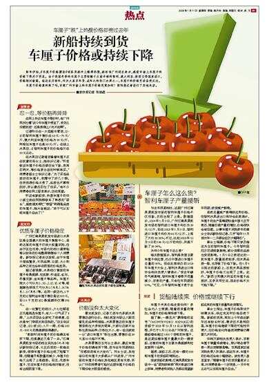虽然总量减产影响供应和价格,但智利水果进出口商协会此前表示,车厘子的生产高峰期恰逢中国元旦节前后,随着后续产量的增加,价格很快会有回落。从事车厘子采购多年的秦女士告诉新快报记者,几乎“每年11月到次年一二月都会经历大幅降价”。