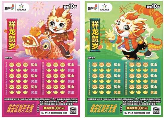 30元票“抢头彩2024”是体彩顶呱刮首款30元生肖主题票,满足了不同购彩者的需求,让人爱不释手。