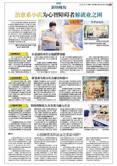 冬日里,烘焙制品自带暖意,面包的香气扑面而来,焦糖色的外表令人食欲大开,奶油、红豆等各色馅料或香甜或浓郁,这是独属于午后的惬意。几年前,婉莹不会想到,如今自己成为了面包坊店主,走上创业的路子;学平面设计出身的阿然(化名)也在餐厅找到了自己的“用武之地”。身为心智障碍者的他们把爱心融入甜食、饮品,用美食治愈顾客,也治愈着自己,一个又一个开在街头巷尾的小店正为这群特殊群体开拓出一条社会融合的可行之路,同时缓解了他们的就业之困。