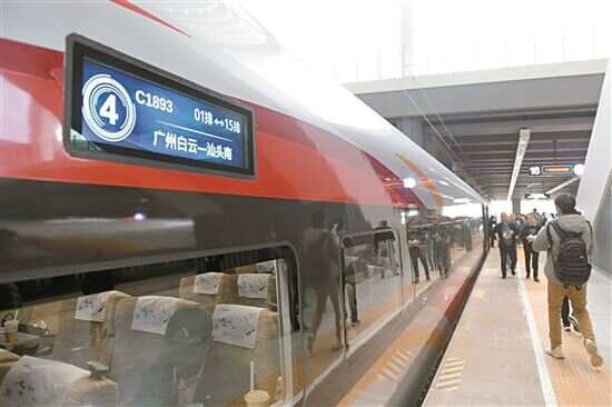 ■从广州白云站开出的首趟列车C1893次列车准备发车前往汕头南站。(资料图) 新华社发