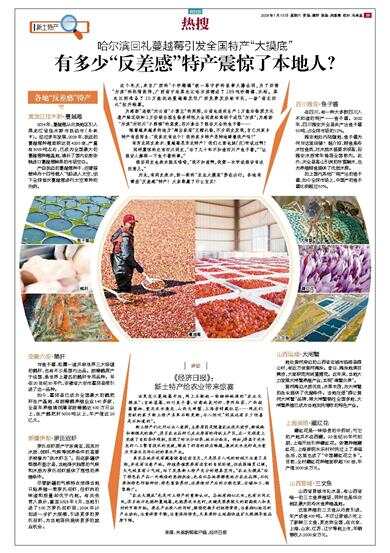 其实各地并没有藏着掖着这些宝贝,只是很多人吃的时候只注意了名称,并没有注意产地。种植养殖需要有适宜的自然环境,但我国幅员辽阔,大气候里有小气候,给了发展新土特产充分的想象空间。“农业大摸底”给了特色农产品一次绝佳的亮相机会,也启示各地要擦亮地方农业品牌,不仅要把特色作物种好、特色畜禽养好,还要做好产后的分级包装、仓储加工、销售推广。