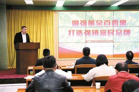■驻广宁县古水镇帮扶工作队队长陈金虎介绍品牌项目。