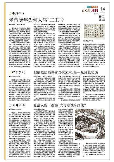 明末同样佯狂避世的冯班在《钝吟书要》即云米芾主要学习《圣教序》:“米元章云:‘但取《圣教序》学之,更学右军诸札,使大小相杂,便成书。’此言甚有会。”清人王澍《竹云题跋》也有类似的说法:“圣教自有‘院体’之目,故有宋一代无称道者。然苏、米诸公往往隐用其笔法,而米老尤多。乃其平生绝未尝一字道及,所谓‘鸳鸯绣了从教看,不把金针度与人’也。此卷实笔笔从《圣教》来。余临写之次,恍然有契,特为拈出,不使千百世后为古人所欺,亦是一适。”其中明明白白地告诉世人,米芾《蜀素帖》是学习《圣教序》的一件典型作品。米芾虽在形式上、结字上学有所得,但仍时露自己从前作书的习惯;有时为了蕴藉一些,用笔略显犹豫,时现收拾不及之处,从而出现抖擞滞顿的贼笔之病。米氏研习《圣教序》及右军,又不说与人听,除了“不传之秘”的原因,以及天性好妄语外,就是因为“专学晋人”后虽有“大进”,但到老始终未能“入晋人格”。他说:“唐太宗力学右军不能至……故大骂子敬。”而他自己则是力学右军不能至,晚年也大骂“二王”了:“一洗二王恶札,照耀皇宋万古。”