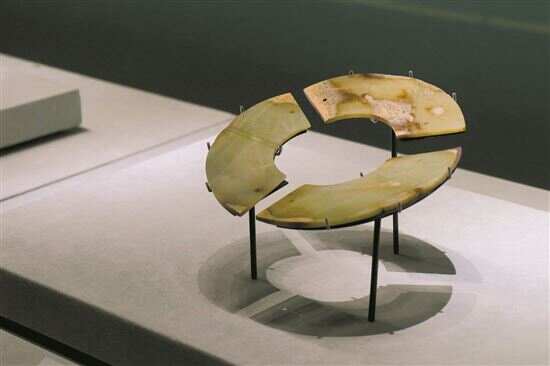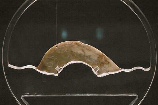 远古时期,玉多作为宗教仪式中的礼器。比如玉璜,新石器时代已经出现,是巫师在进行宗教礼仪活动时的饰件。以甘肃为中心地区的齐家文化属于新石器时代晚期文化,由于宝鸡地处关中平原最西端,与甘青地区相接,宝鸡地区出土的齐家文化玉器较多。本次展览中,展出了西周窖藏中的“三璜联璧”,体现出齐家文化多璜联璧的玉器文化特色。