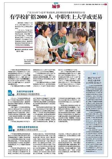 新快报讯 有院校“3+证书”比上年扩招超2000人,中职毕业生今年上大学或会更加容易。