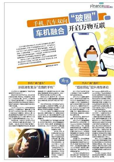 有业内人士表示,万物互联背景下,汽车与手机的联动变得更加迫切且不可或缺。“你中有我,我中有你”的竞合关系,正成为手机和汽车两大行业的发展新趋势。