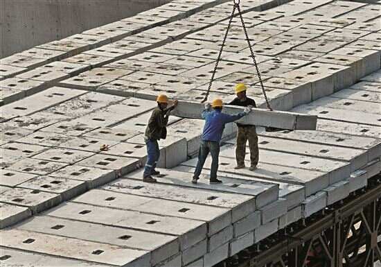■工人在深江铁路广中江特大桥南沙站桥段施工。新华社发(资料图)