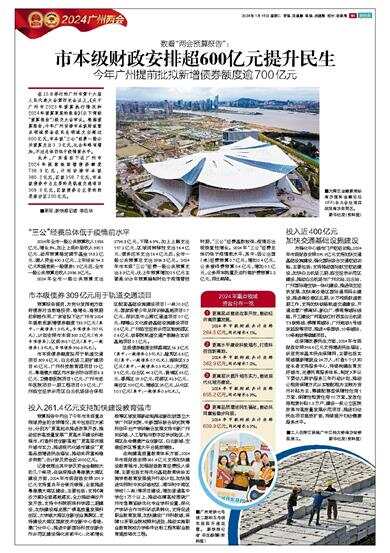 在15日举行的广州市第十六届人民代表大会第四次会议上,《关于广州市2023年预算执行情况和2024年预算草案的报告》(以下简称“预算报告”)提交大会审议。根据预算报告,今年广州安排市本级财政重点领域资金在民生领域支出超过600亿元,市本级“三公”经费一般公共预算支出3.3亿元,比去年略有增加,不过总体仍低于疫情前水平。