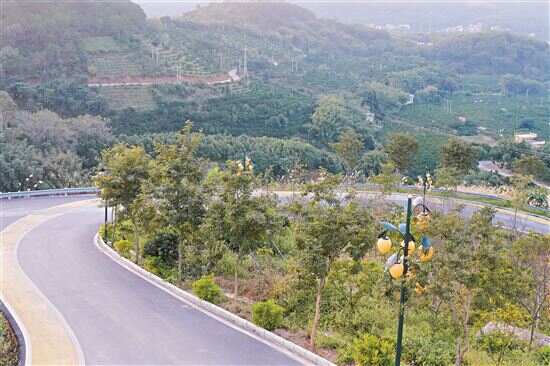 黝黑平坦的沥青道路盘绕葱茏山林间,登上观景台,黄皮果样式的路灯亮起,顺着沥青路延伸至不远处的村镇……“从这里俯视,目之所及的绿色皆是黄皮果树。”在郁南县建城镇便民村的世界黄皮公园,郁南县农业农村局相关人员和佛山派驻建城镇帮扶工作队队员提到,随着这两年“西关甜乡”乡村振兴示范带打造和农文旅产业融合发力,村容村貌得到肉眼可见的整治提升,建城镇作为郁南县无核黄皮的种植中心,当地农户的发展信心也增强了许多。