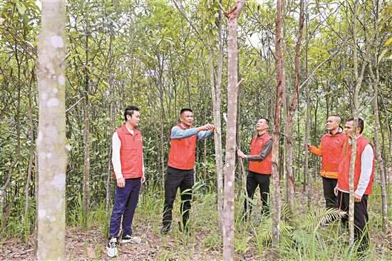 ■驻榃滨镇工作队查看肉桂树生长情况。