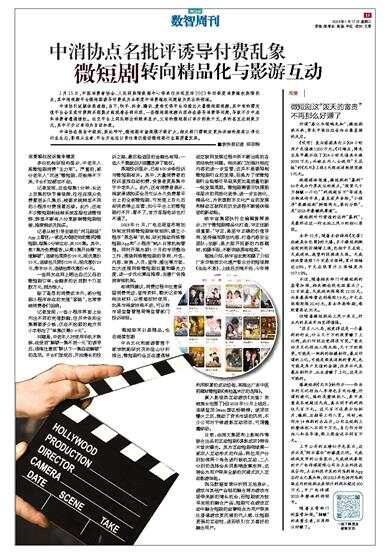 中消协在报告中提到,舆论呼吁,微短剧市场规模不断扩大,相关部门需制定更加详细的规范以净化行业生态,影视从业者、平台方也应以责任意识推动微短剧行业高质量发展。