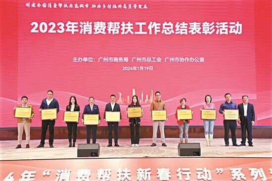 近年来,广州销售帮扶农产品力度和金额逐年增加,2023年累计销售帮扶农产品超240亿元,再创新高!1月19日,广州市2023年消费帮扶工作总结表彰活动在广州国际医药港举行。