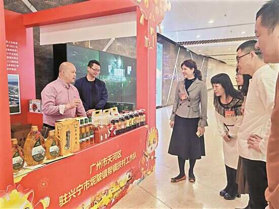 据悉,驻坭陂镇工作队发动了坭陂镇6家企业参与线上线下相结合的展销活动,产品包括客家娘酒、丝苗米、蜂蜜、名峰茶油、瑞兴红薯等数十种名特优农产品。“想不到广州街坊这么热情,我们带来的农特产品第一天就被抢购了三分之一,特别是红薯很快就卖断货。”江世军说,想借助参加此次活动为契机,展示推广品牌,搭建销售平台,推动名特优农产品“出山、进圈(CBD商圈)、入湾”。本次消费节将举办到1月31日,后续还有天河驻兴宁各镇工作队发动企业参与展销。