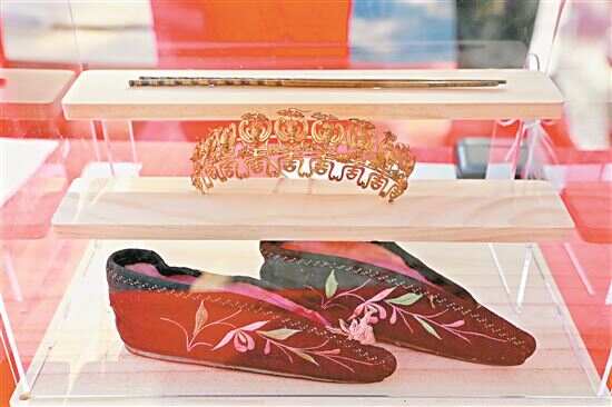 新快报记者在现场见到,婚俗文化馆内展出了传统婚礼食物、西关传统婚俗嫁妆、结婚“三大件”等物品。其中,有清朝年间的过礼文书“文定之敬”,有女家敬茶使用的“乘龙感恩套杯”、回男家敬茶时候使用的“跨凤天地套杯”等。