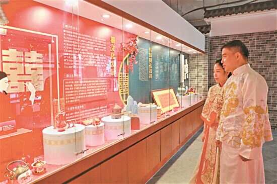 ■荔湾区婚俗文化馆内设婚俗历史展览、还原古代实体场景、双喜打卡点等场景。 新快报记者 毕志毅/摄
