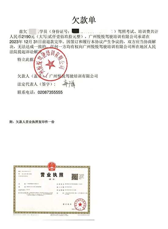■广州悦悦驾驶培训有限公司在出具的《欠款单》中承诺在2023年12月31日前退款完毕。
