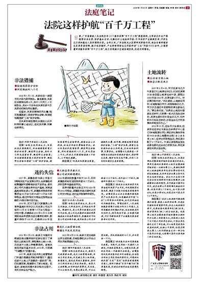 日前,广东省高级人民法院发布10个服务保障“百千万工程”典型案例,主要涉及打击产销假冒伪劣农资、保护基本农田、化解农村土地流转纠纷、引导扶贫产业健康发展、守护生态文明和整治人居环境等内容。去年以来,广东法院充分发挥审判职能作用,依法妥善审理涉农发展要素保障、城乡经济循环、产业转移等新业态纠纷和涉“三农”纠纷4000余件,以高质量审判服务保障“百千万工程”,助力实现城乡区域协调发展,促进共同富裕。